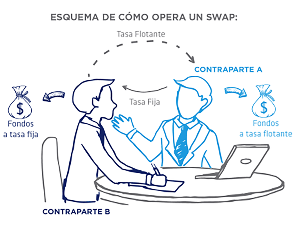En este tipo de contratos, las partes contratantes, generalmente una entidad financiera y un cliente de la misma, se comprometen a intercambiar flujos monetarios en un periodo de tiempo determinado en el mismo contrato.